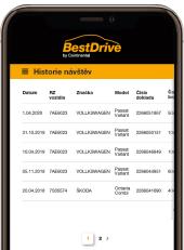 V části Historie návštěv si můžete díky jednoduchému filtru dohledat, se kterým vozem a kdy jste u nás realizovali autoservisní nebo pneuservisní služby. Naleznete tu i přehled nakupovaného sortimentu. Aplikace zobrazuje přehled jednotlivých zrealizovaných služeb včetně vyčíslení ceny, kterou jste za tuto službu zaplatili. Tyto informace vám pomohou při plánování servisních prohlídek a poskytnou vám i přehled o tom, kolik finančních prostředků jste vynaložili na servis konkrétního vozu. Díky tomu, že máte v aplikaci evidováno více vozidel v rámci jednoho klubového účtu, dokážete si kontrolovat celý vozový park vaší rodiny.